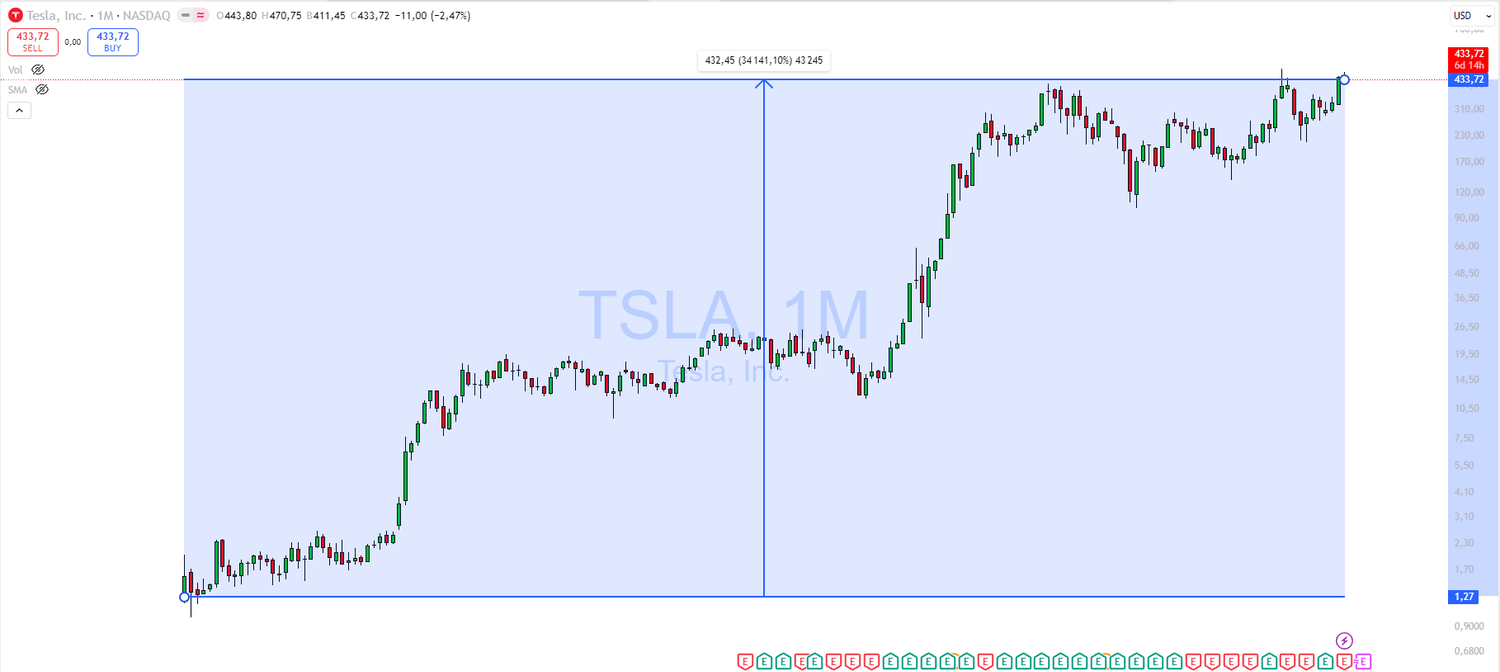 En d’autres termes, 1 000 $ investis dans Tesla à son IPO valent aujourd’hui plus de 340 000 $.