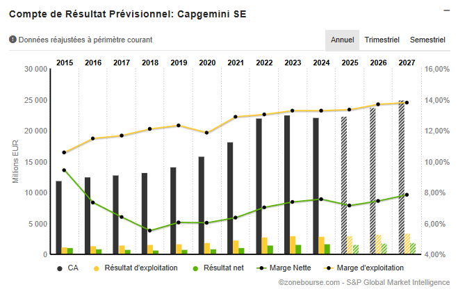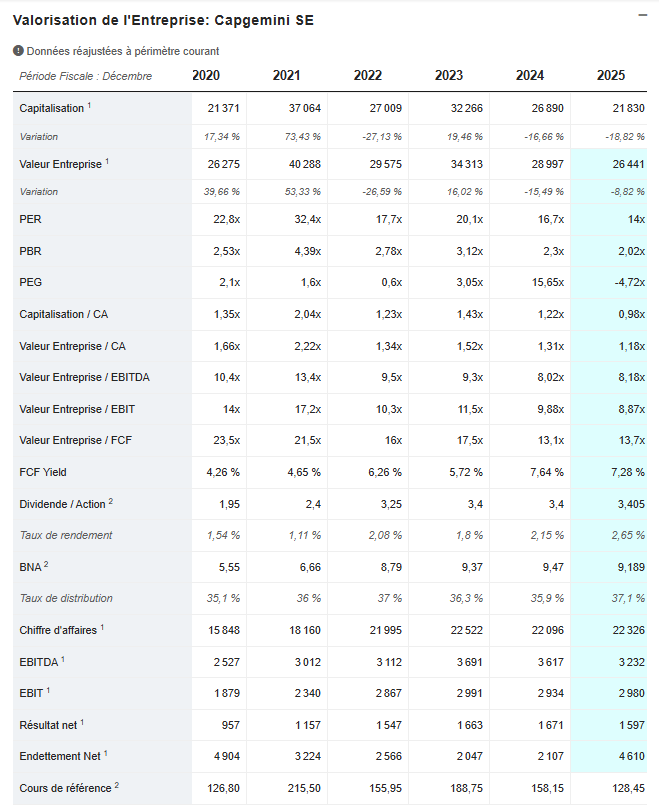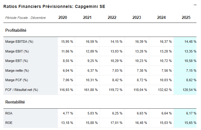 En résumé, Capgemini reste une valeur de qualité sur le plan fondamental : marges stables, génération de cash élevée et rentabilité financière robuste.