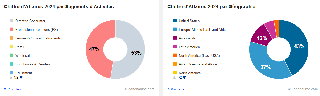 Professional Solutions (47 % du CA) : la vente aux opticiens indépendants reste robuste, portée par les verres Essilor et la forte demande en instruments optiques.