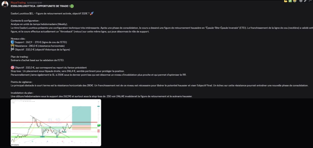 Il y a moins d’un mois, j’avais partagé avec les membres du Rique Bourse Club un plan de trading clair sur EssilorLuxottica.