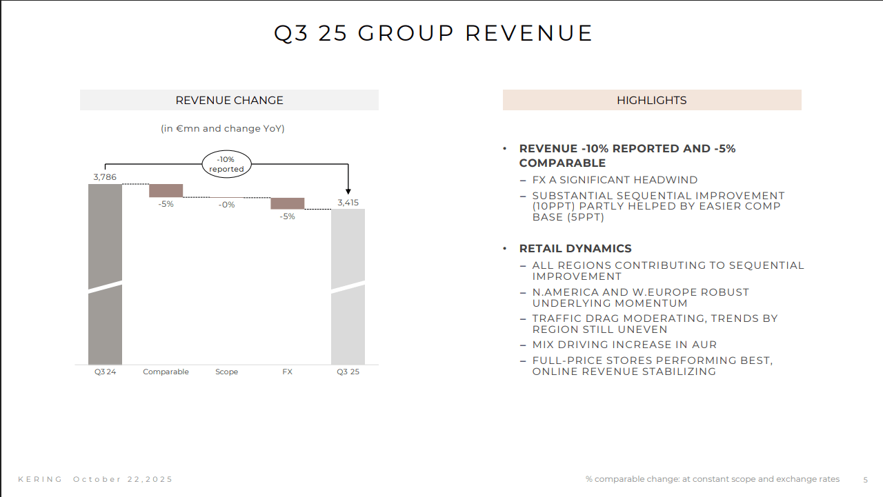 Kering n’est pas encore sorti de l’ombre, mais la dynamique s’améliore, et la base de comparaison devient plus favorable.