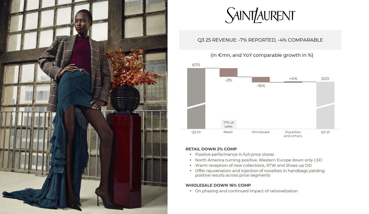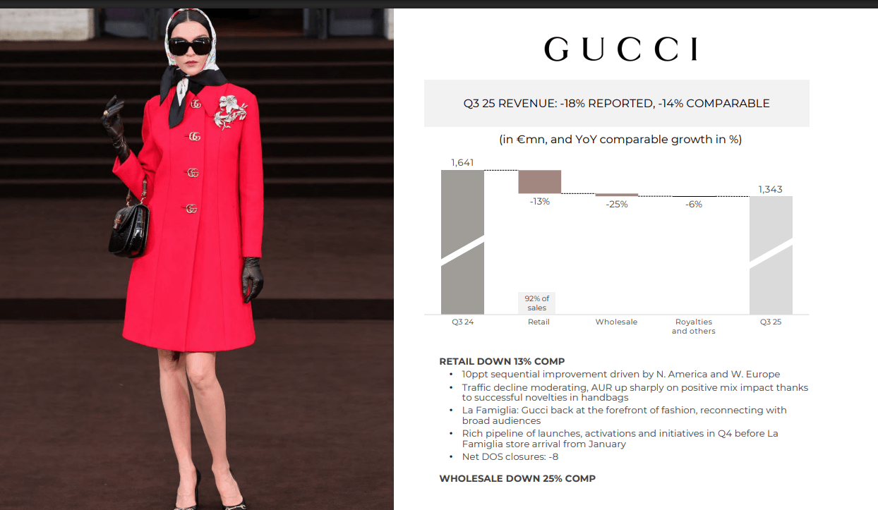 Les nouveautés — notamment dans la maroquinerie — plaisent, le mix produit s’améliore, et le pipeline des lancements s’annonce chargé pour le T4 avec la nouvelle collection La Famiglia.