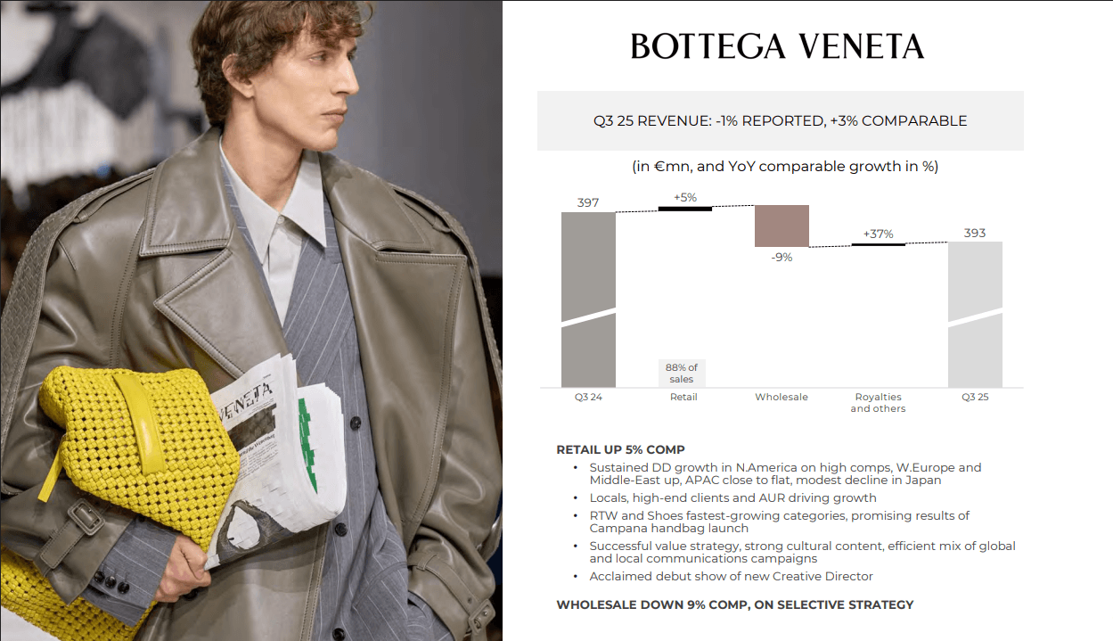 Bottega Veneta, elle, confirme son rôle de pilier de stabilité.