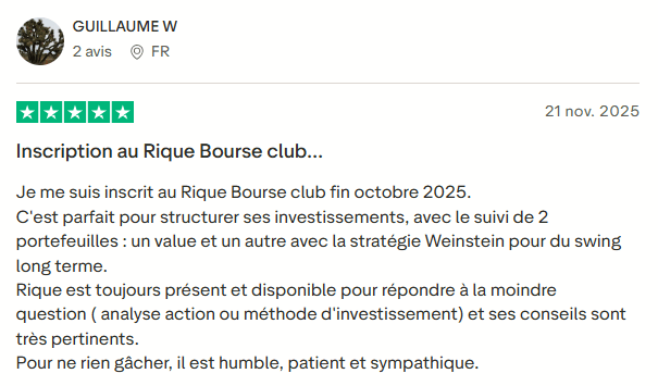 Tout investissement comporte une part de risque, c’est une réalité. En revanche, ce qui fait perdre de l’argent à la majorité des particuliers, ce sont les décisions prises sans méthode, sous l’émotion ou dans la confusion. Le RIQUE BOURSE CLUB vous apporte un cadre structuré, des règles claires, des scénarios définis et un accompagnement continu, afin de réduire drastiquement les erreurs coûteuses et les décisions impulsives.