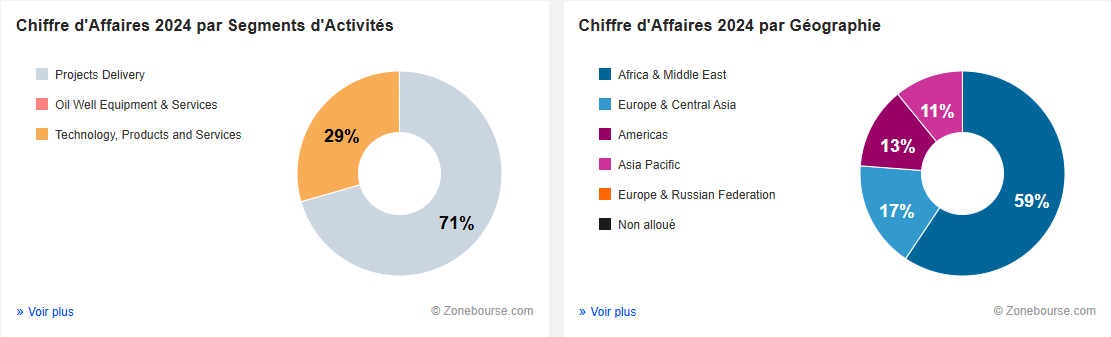 59 % du chiffre d’affaires proviennent du Moyen-Orient et d’Afrique, principalement grâce aux contrats phares avec ADNOC et QatarEnergy.