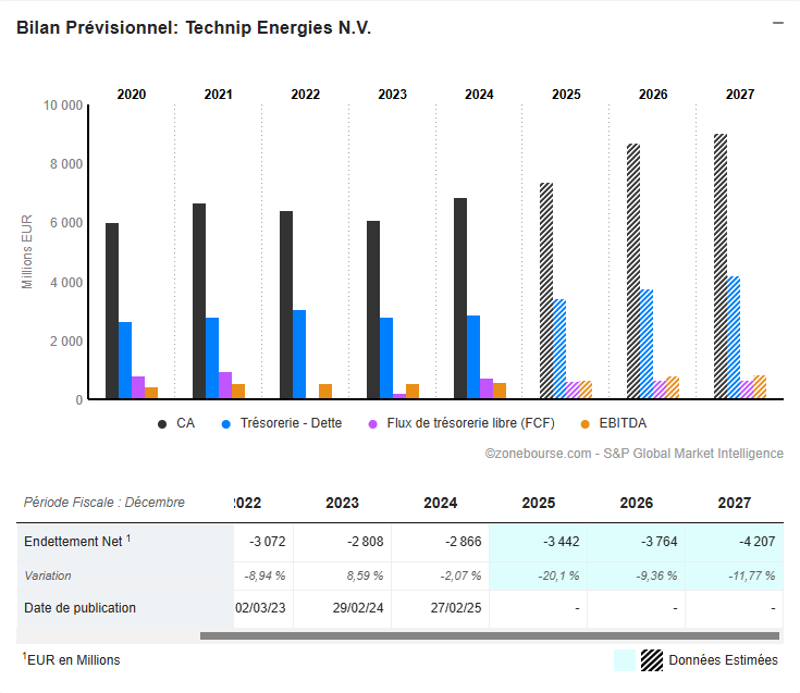 Cette dynamique s’explique par la nature défensive du modèle. Technip Energies n’est pas une valeur spéculative : c’est une société hautement prévisible, dotée d’une base de revenus contractés à long terme et d’une position de trésorerie nette colossale.
