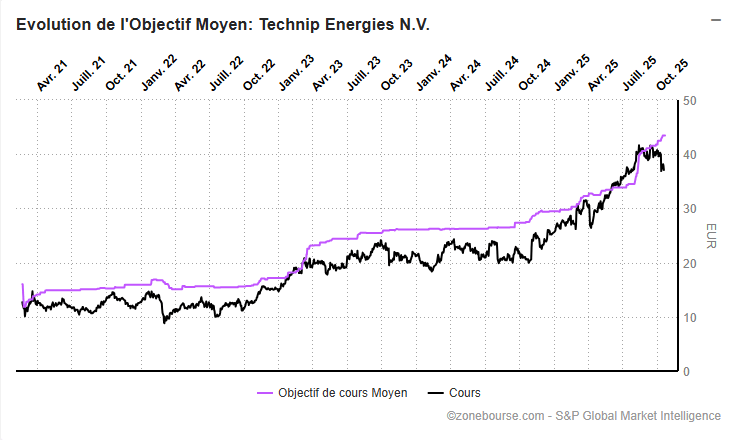 Objectif moyen : 43,46 €, soit +17 % au-dessus du cours actuel (37,08 €).