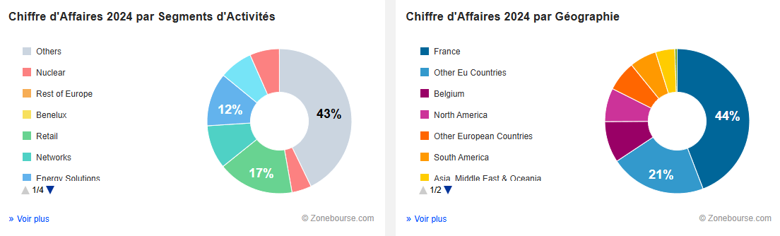 L’énergie nucléaire et les réseaux (près de la moitié de son activité),