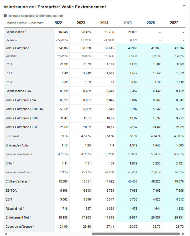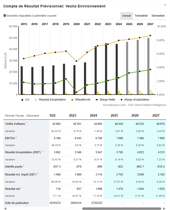 Veolia, de son côté, avance lentement mais sûrement, avec une trajectoire qui inspire confiance pour le long terme.
