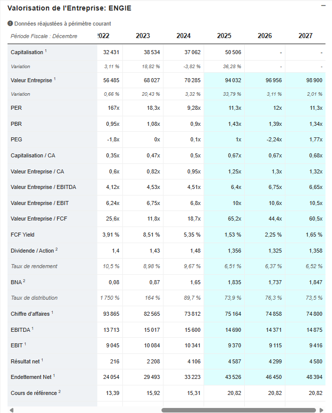 En revanche, les ratios montrent une structure de capital plus levierisée qu’Engie sur le papier :